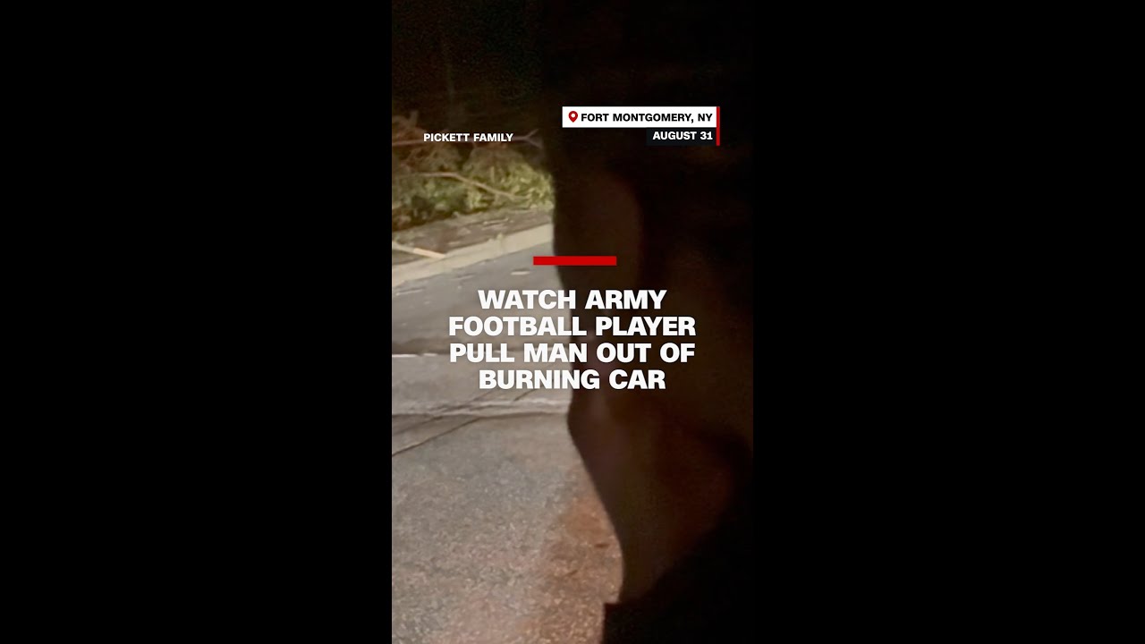 #CNN Watch Army football player pull man out of burning car