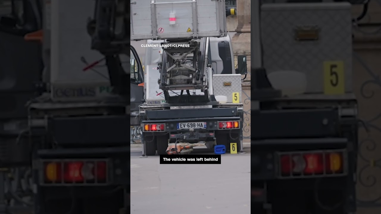 Video from the crime scene outside the Louvre in Paris appears to show the tools used by thieves who broke into the museum on Sunday, stealing an ‘inestimable’ value of jewels. #CNN #News