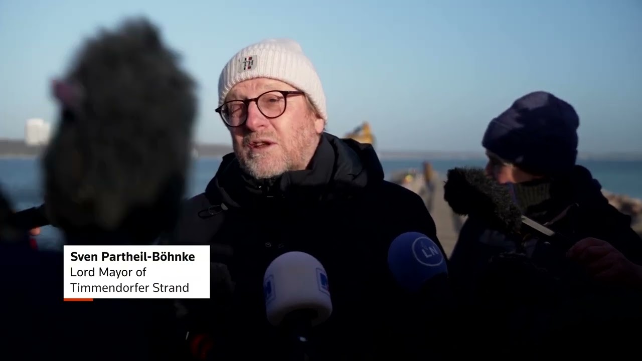 A humpback whale that had been stranded for days in shallow waters of the Baltic Sea was seen swimming freely. Experts warned its survival was still uncertain. We are deleting a previous video with the incorrect date.