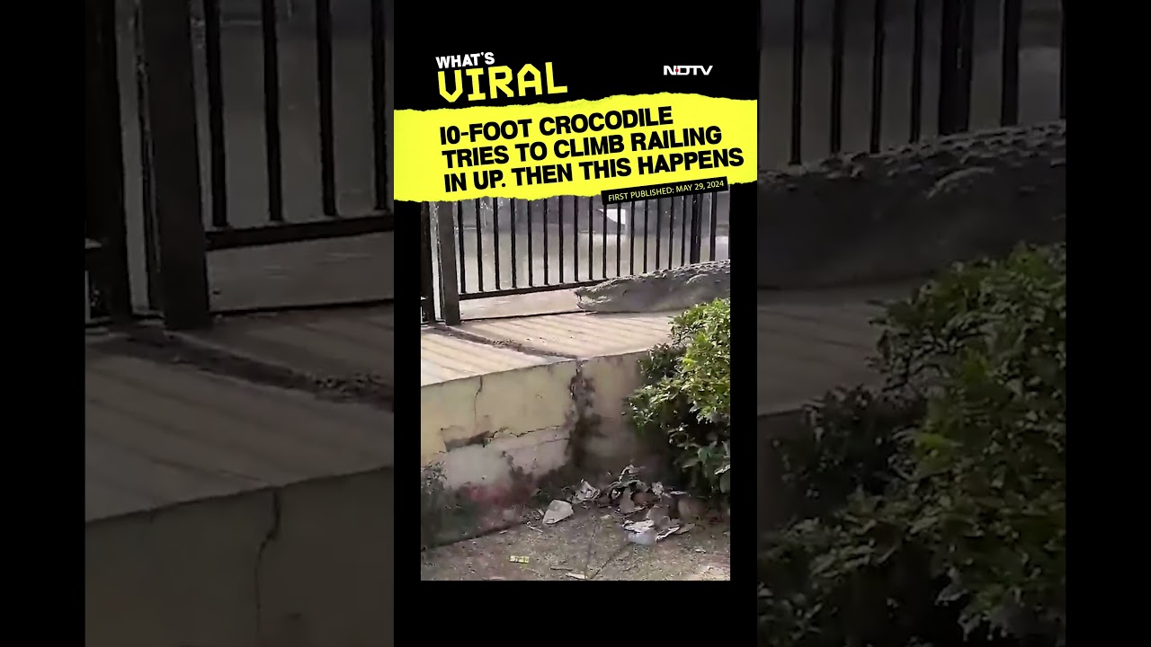 First Published Date: May 29, 2024 – Panic spread in an Uttar Pradesh town when a ten-foot crocodile crawled out of a canal and wandered into the nearby area on Wednesday. In videos, recorded by frightened locals, the large reptile is seen attempting to climb over a railing near the canal.