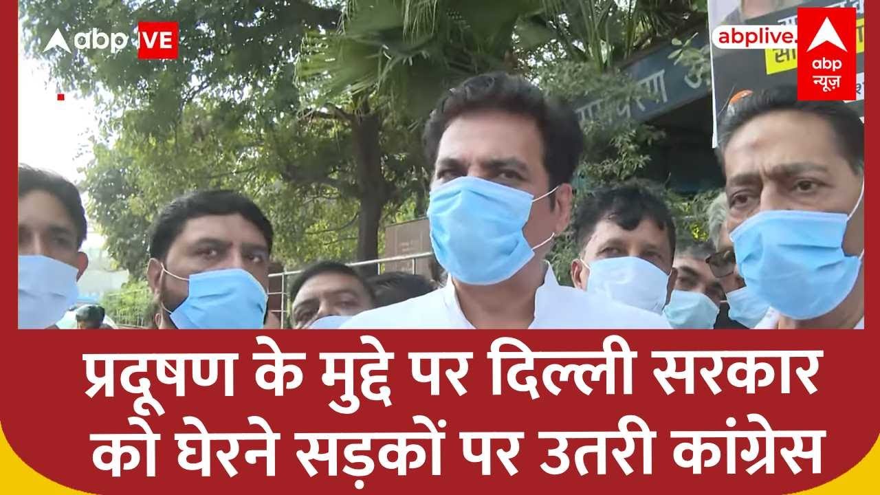 Delhi Pollution: Mask पहनकर प्रदूषण के मुद्दे पर दिल्ली सरकार को घेरने सड़कों पर उतरी कांग्रेस #ABP