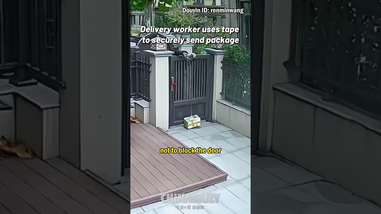 Delivery worker uses tape to securely send package #ChinaDaily #中国日报