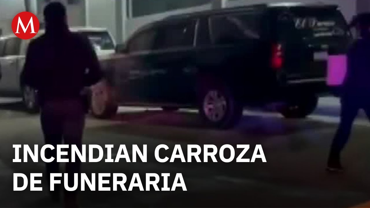 Se captó en video cómo dos personas incendiaron las carrozas de la funeraria, una les arrojó un líquido inflamable y otra se encargó de prenderles fuego; al momento no hay detenidos ni lesionados.