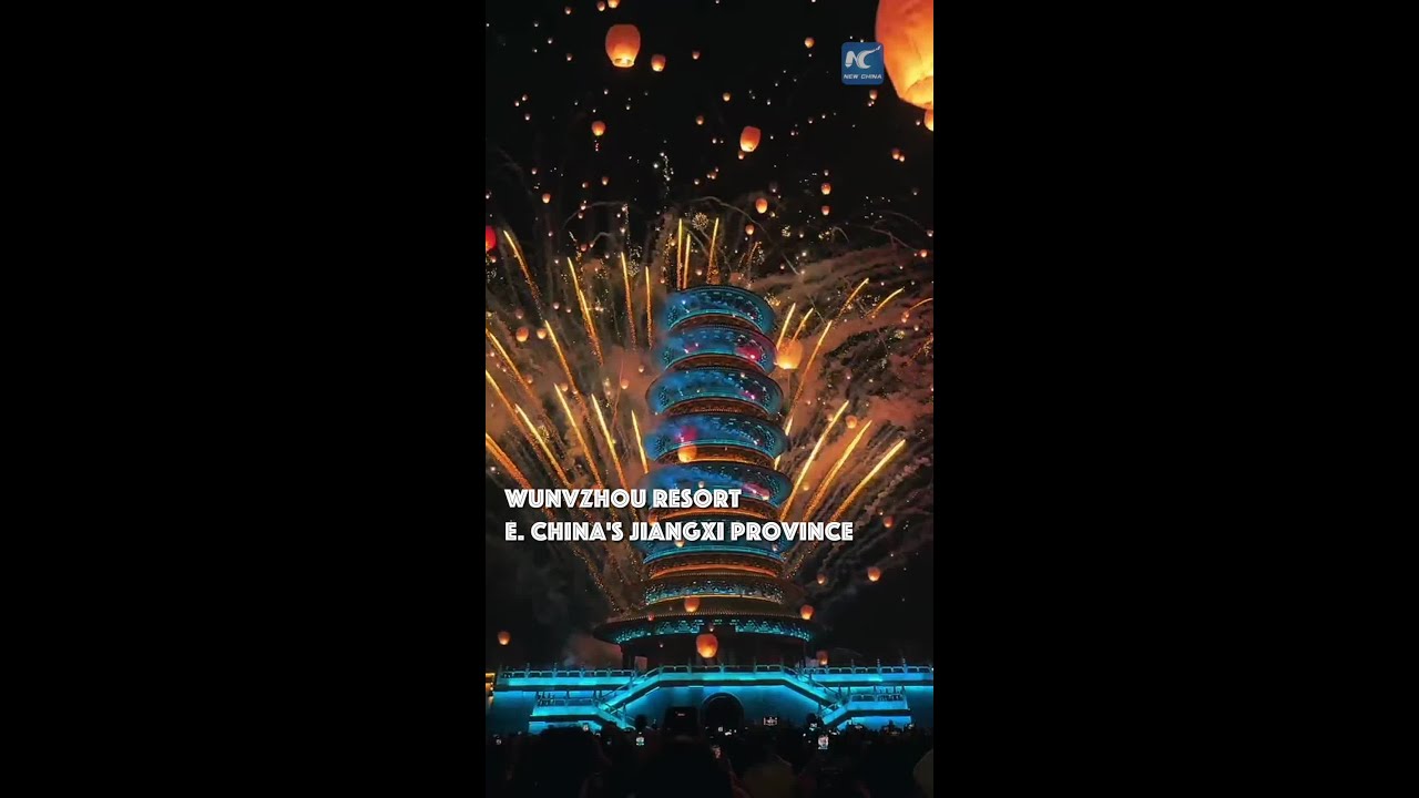 Fireworks and lanterns paint the sky over Wunvzhou #NEWCHINATV