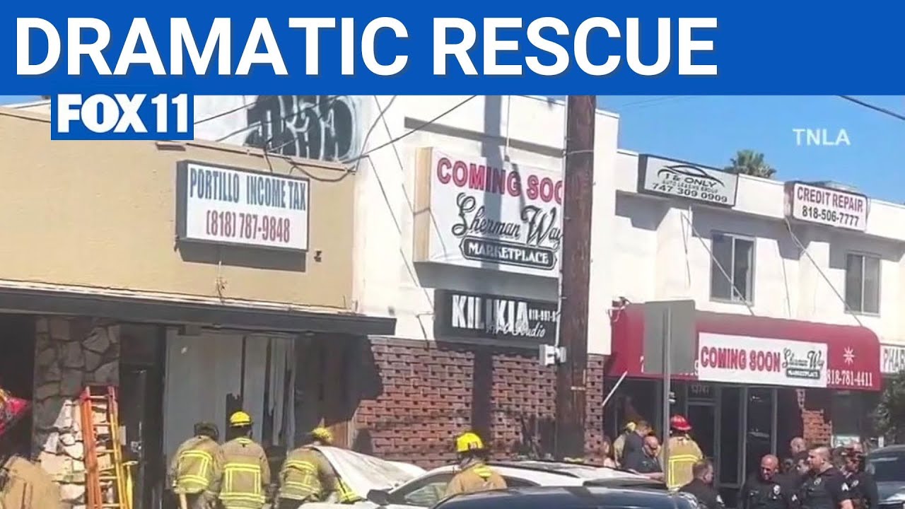 #fox11LA Man trapped after car crashes into building in Valley Glen | FOX 11 LA