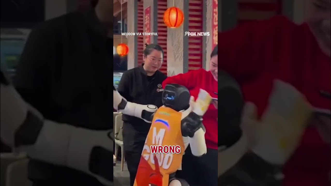 Bizarre footage captured the chaotic moment a service robot appeared to spin out of control at a restaurant near San Jose, California, leaving staff struggling restrain the uncontrollable humanoid. #foxnews #news #us #fox #viral #viralvideo #california #danginrobot