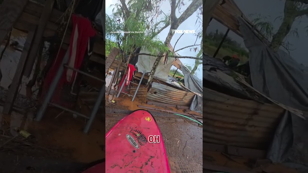 A good Samaritan springs into action in northern Oahu, paddling through flooded farmland to rescue dogs stranded in rising waters after heavy rains inundated parts of the island. #fox #media #us #usa #new #news #foxnews #rescue #animals #dogs #flood #weather #storm #rain #hawaii #oahu #hero #community #kindness #environment #disaster #nature #emergency #water #shorts