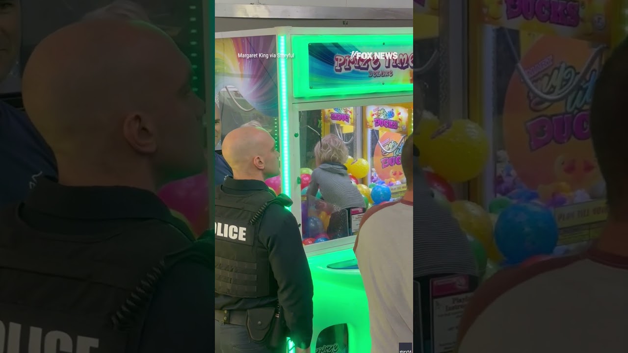 Toddler CLIMBS INTO CLAW MACHINE #foxnews #news #us #fox