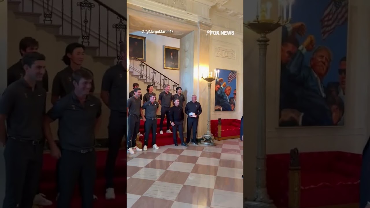 Trump greets Oklahoma State men’s golf team with golf swing #shorts #us #trump #news #foxnews
