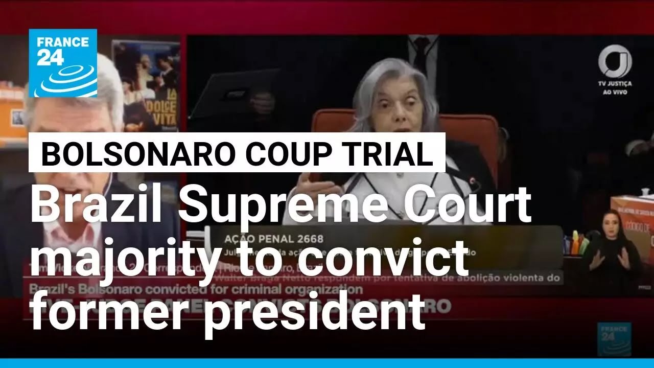 Former Brazilian president Jair Bolsonaro was convicted by a Supreme Court majority on Thursday of plotting a coup to remain in power after losing the 2022 election, a powerful blow to the populist far-right movement he created. The presumptive ruling by a majority of a panel of five justices in Brazil’s Supreme Court makes Bolsonaro the first former president in the country’s history to be convicted for attacking democracy. FRANCE 24’s Time Vickery reports from Rio De Janeiro.