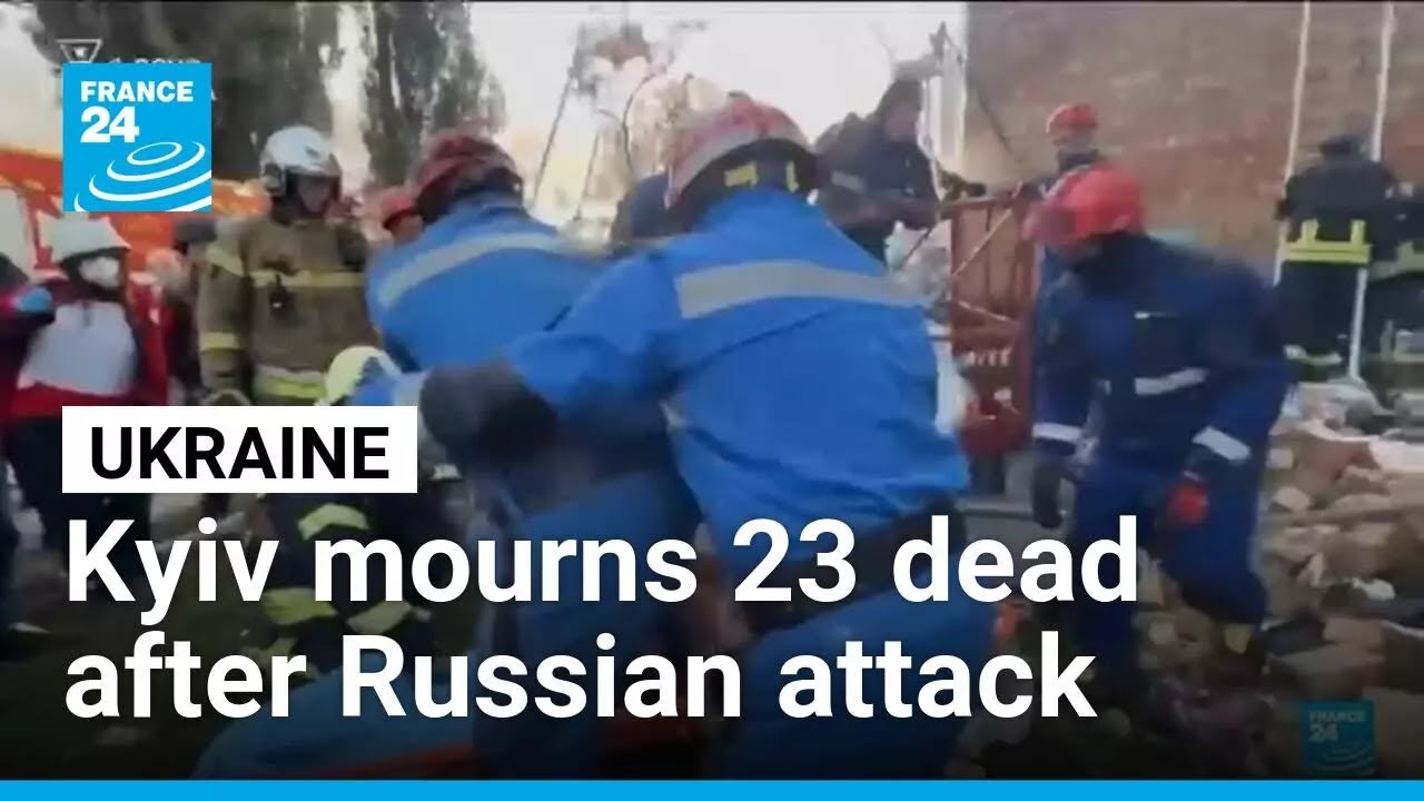 #FRANCE 24 Peace efforts in limbo as Kyiv mourns 23 dead after Russian attack • FRANCE 24 English