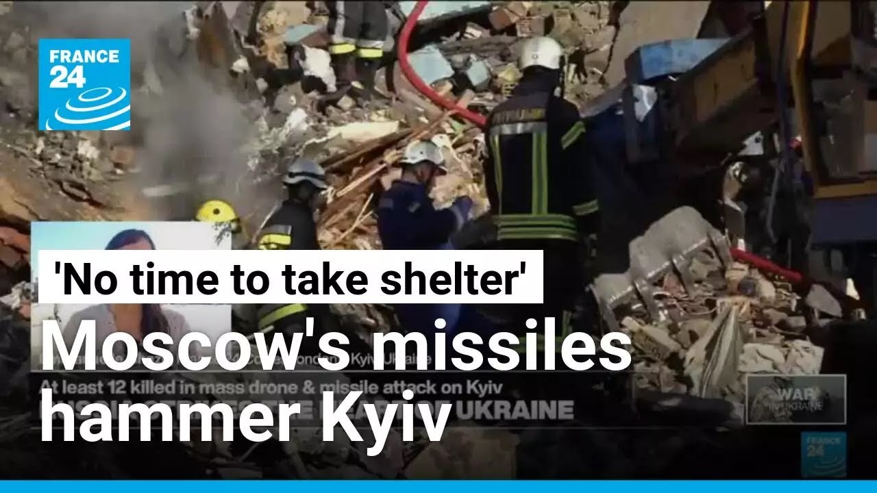 FRANCE 24’s Kyiv correspondent Emmanuelle Chaze reports from the Ukrainian capital, where Russian missiles hammered seven districts across the city. The strikes killed at least 12 people and wounded dozens more, local authorities said.