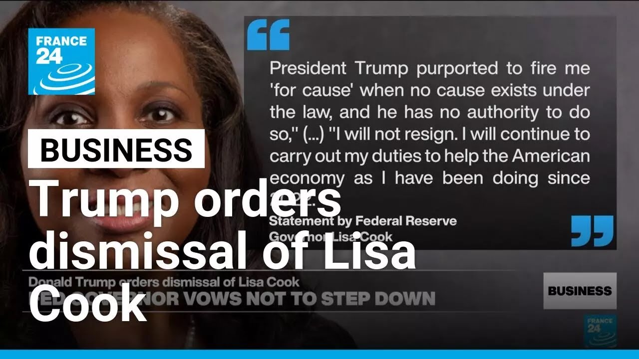 Trump orders dismissal of Federal Reserve Governor Lisa Cook • FRANCE 24 English