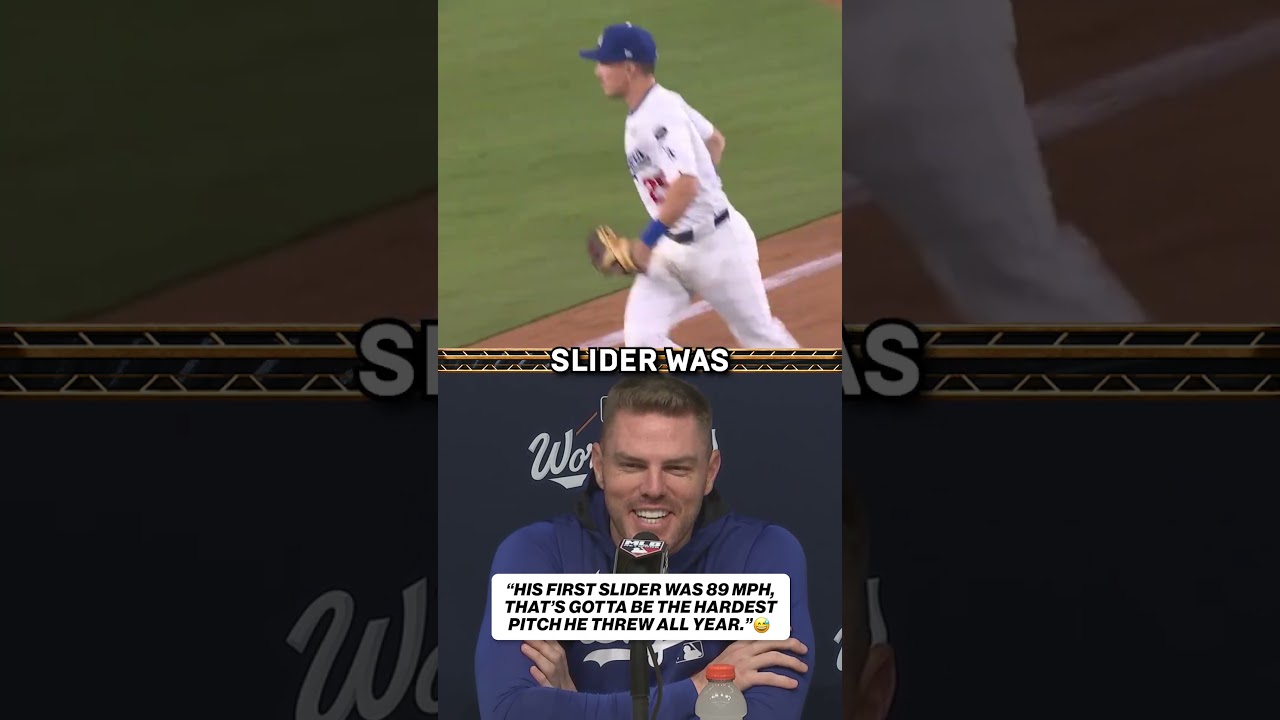 Freddie Freeman had jokes for Clayton Kershaw regarding his velo in Game 3 🤣 #mlb #baseball