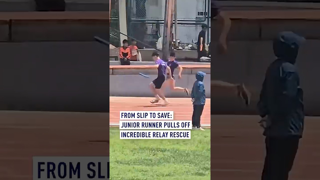 From slip to save: Junior runner pulls off incredible relay rescue