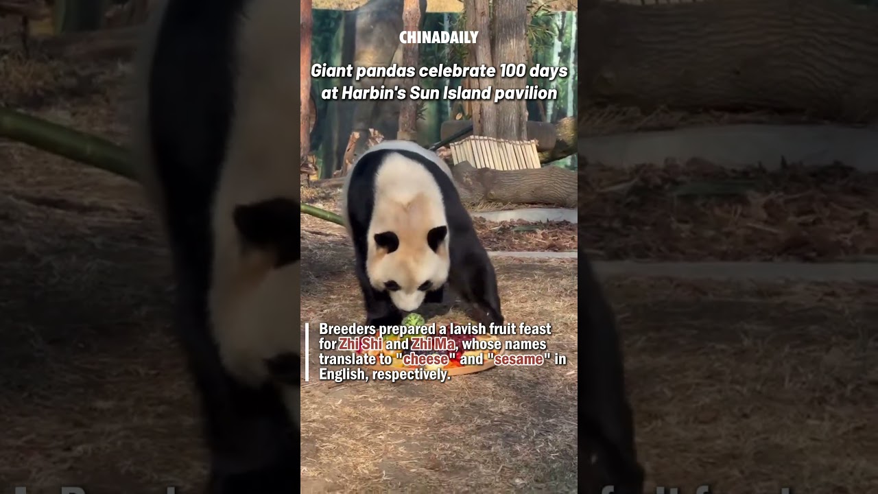 Giant pandas celebrate 100 days at Harbin’s Sun Island pavilion #ChinaDaily #中国日报
