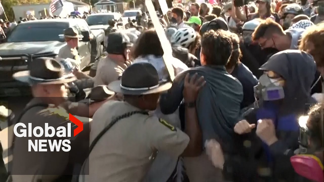 #GLOBALNEWS Scuffles, arrests at anti-ICE protest outside Chicago detention facility