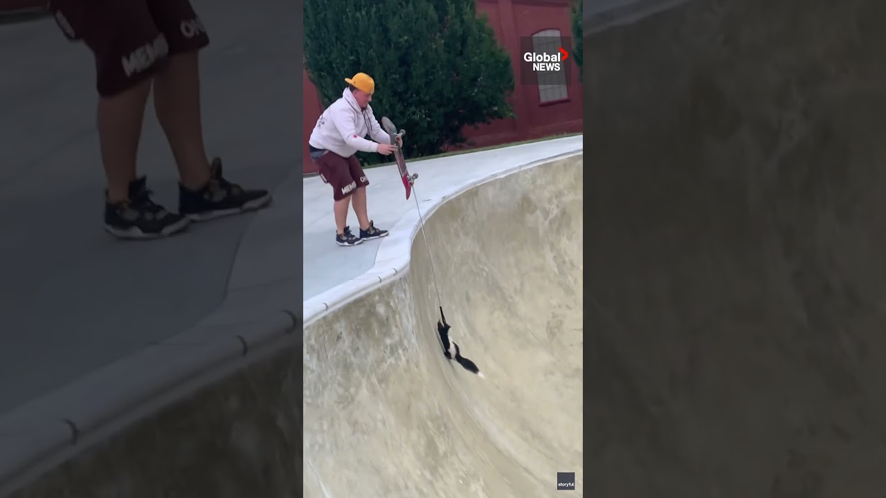 #GLOBALNEWS Stuck skunk saved thanks to a leash, skateboard and a bit of luck 🛹🦨