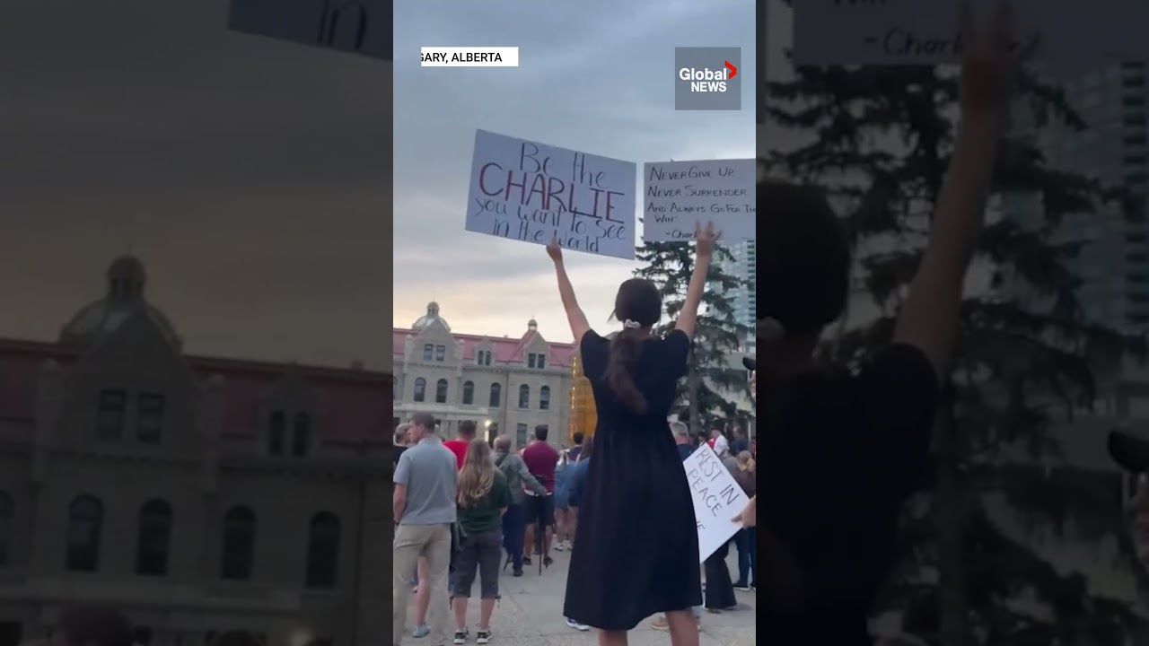 Speaking at the funeral of Charlie Kirk in Glendale, Ariz. on Sunday, U.S. President Donald Trump commended citizens from across the globe for honouring the late right-wing political activist with candlelit vigils after his assassination on Sept. 10. Calgary, Alta. was highlighted specifically for its residents gathering and singing the U.S. national anthem, ‘The Star-Spangled Banner’. #CharlieKirk #Trump #Alberta