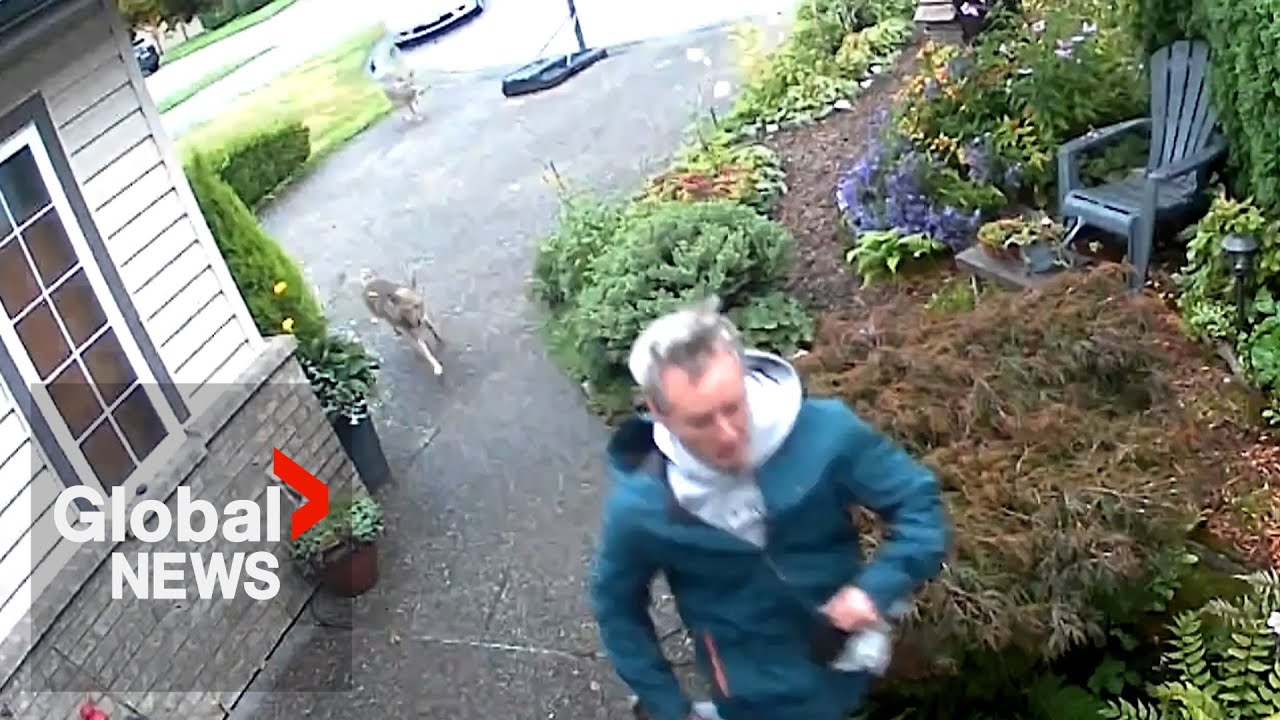 What started as a routine walk on Tuesday in Port Coquitlam, B.C., changed in a matter of seconds when Scott Towers and his dog came across two coyotes acting aggressively.