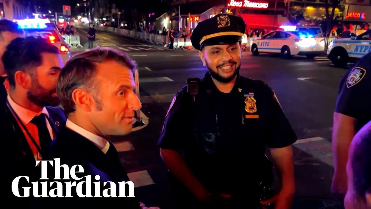 Emmanuel Macron’s car was stopped at a street blocked off for Donald Trump’s motorcade during his visit to New York for the UN general assembly.