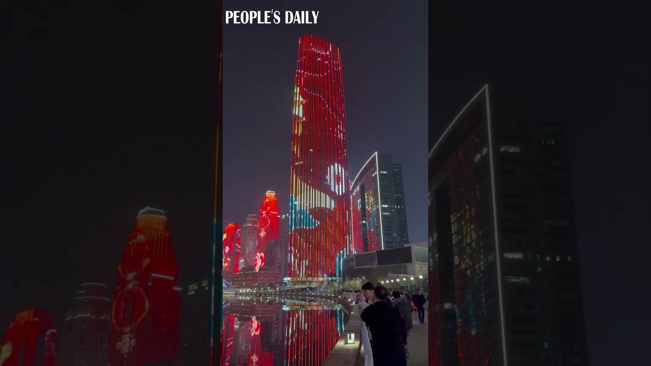 Haihe River in Tianjin glows beneath neon-lit skyscrapers, creating a dazzling cityscape #PeoplesDailyChina #人民日报