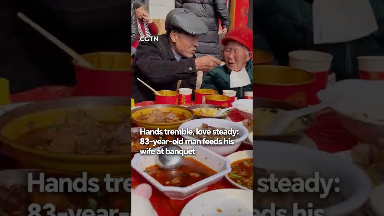 Hands tremble, love steady: 83-year-old man feeds his wife at banquet #CGTN