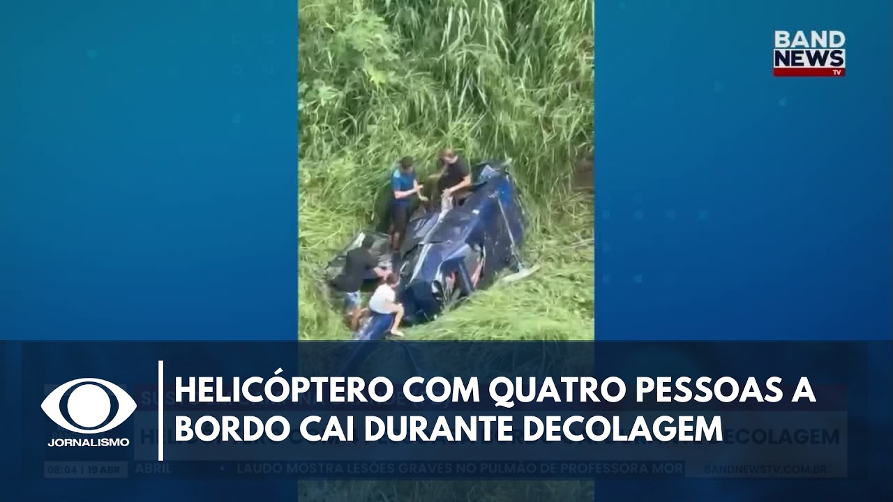 Helicóptero com quatro pessoas a bordo cai durante decolagem em Campina Gra #BandJornalismo