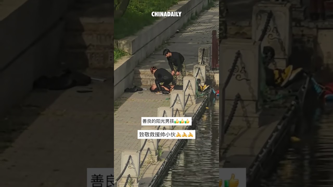 A man fell into the water, and two brave young men heroically rescued him in Xi’an, Shaanxi province. #EverydayHero #China #news
