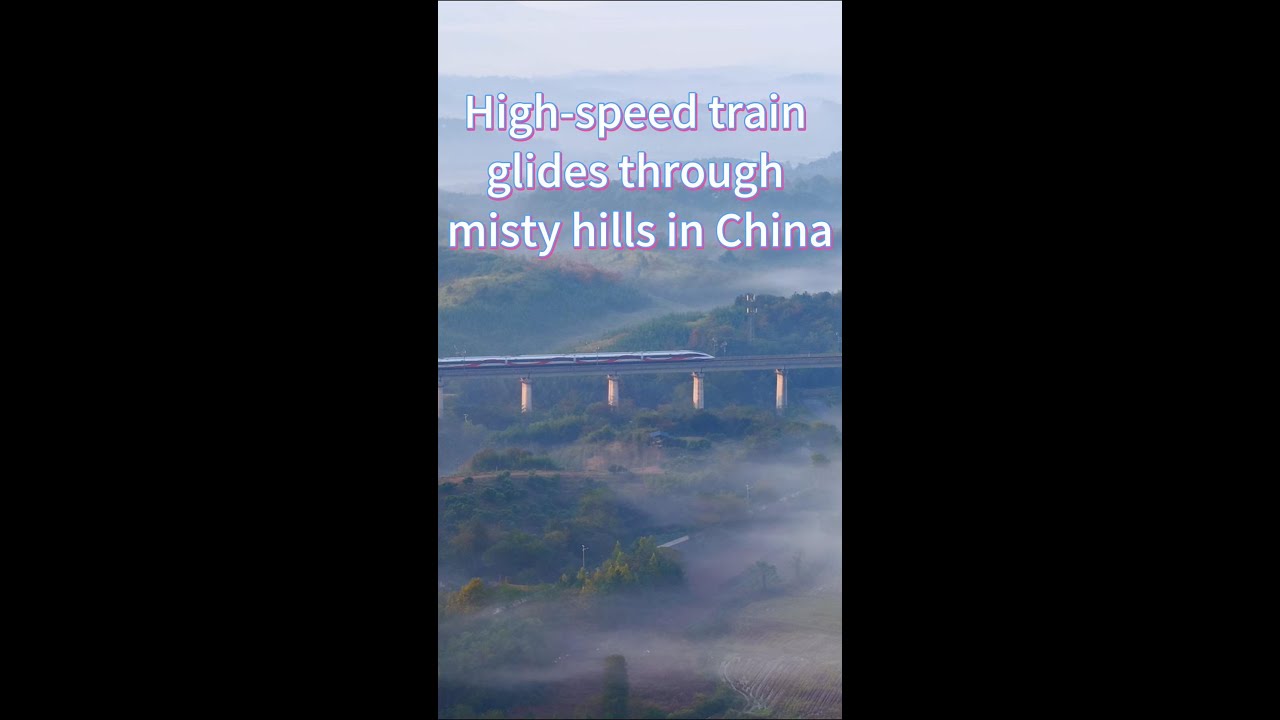 High-speed train glides through misty hills in China #NEWCHINATV