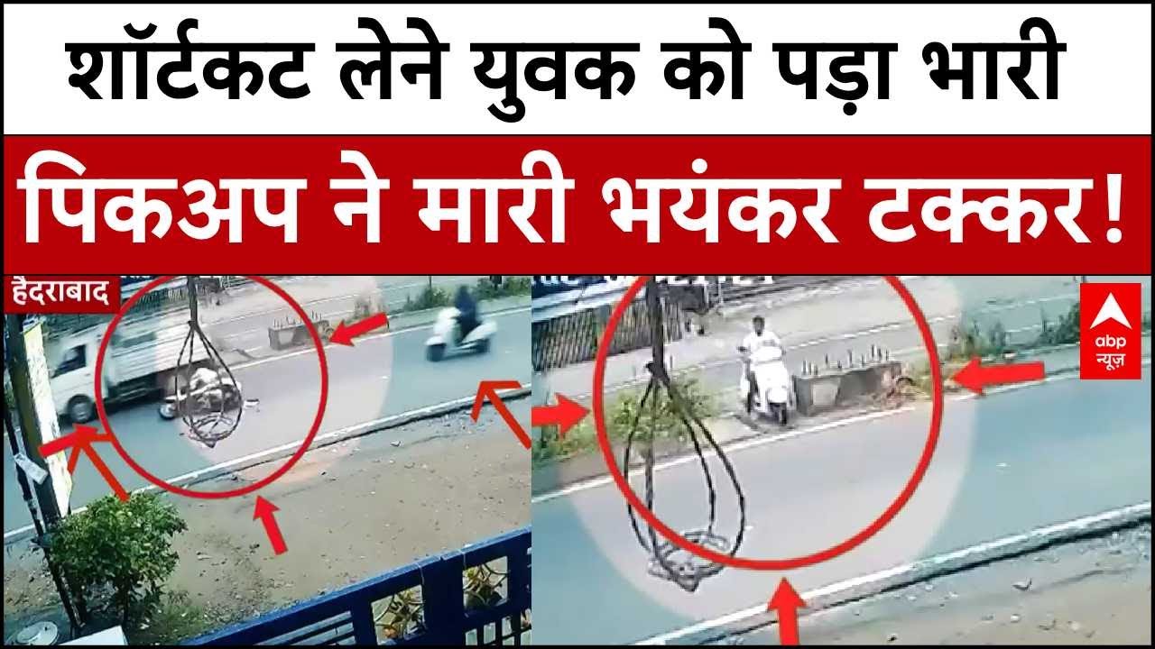 Hyderabad Accident: शॉर्टकट लेना पड़ा भारी..हादसे में बाल-बाल बचा स्कूटी सवार! | Breaking  #ABP