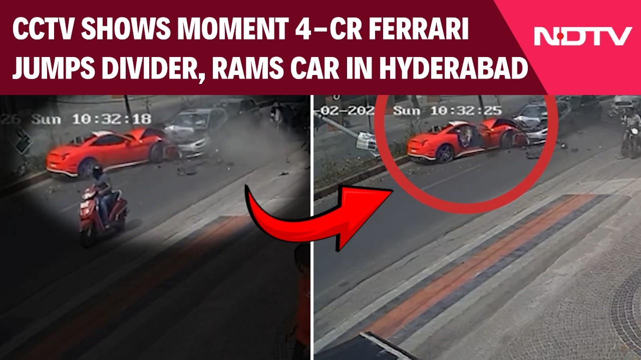 Hyderabad News | CCTV Shows Moment 4-Crore Ferrari Jumps Divider, Rams Car In Hyderabad