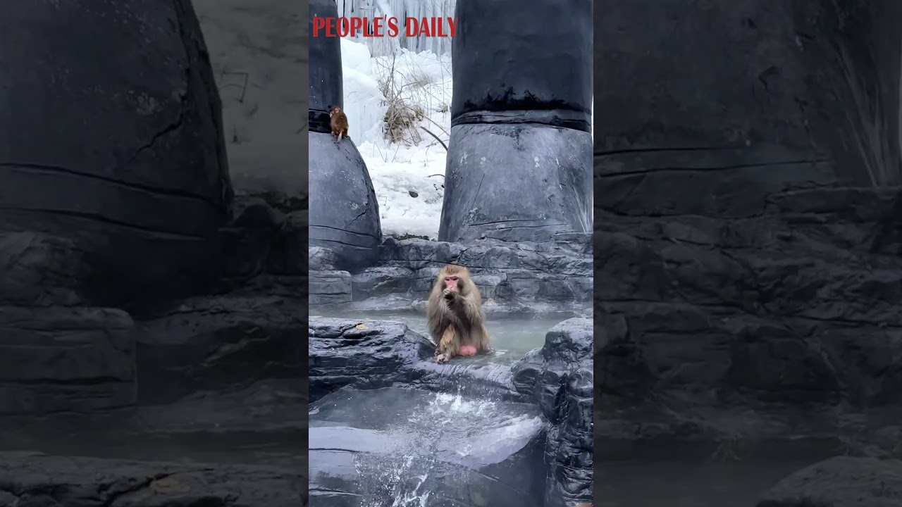 In the midst of winter, it’s spa season for these macaques at Yuntai Mountain in Henan #PeoplesDailyChina #人民日报