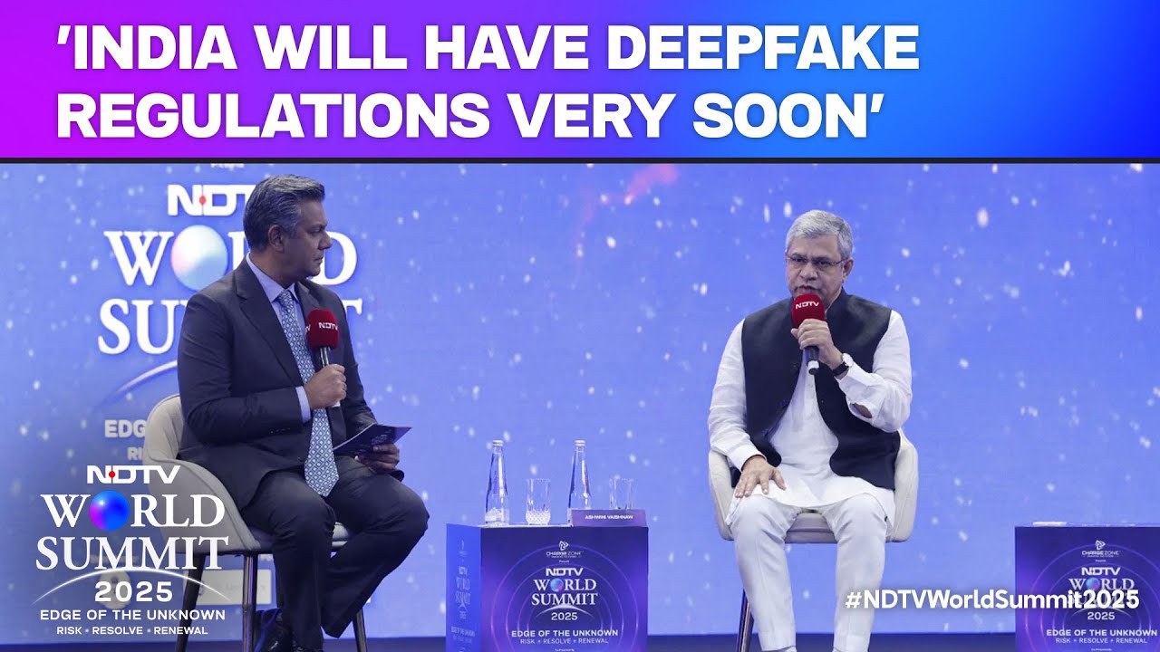 India will “very soon” bring out regulations to counter deepfakes in the AI age, Union Minister Ashwini Vaishnaw announced at the NDTV World Summit in Delhi today. The regulations will have two components instead of just a law on paper, he said.