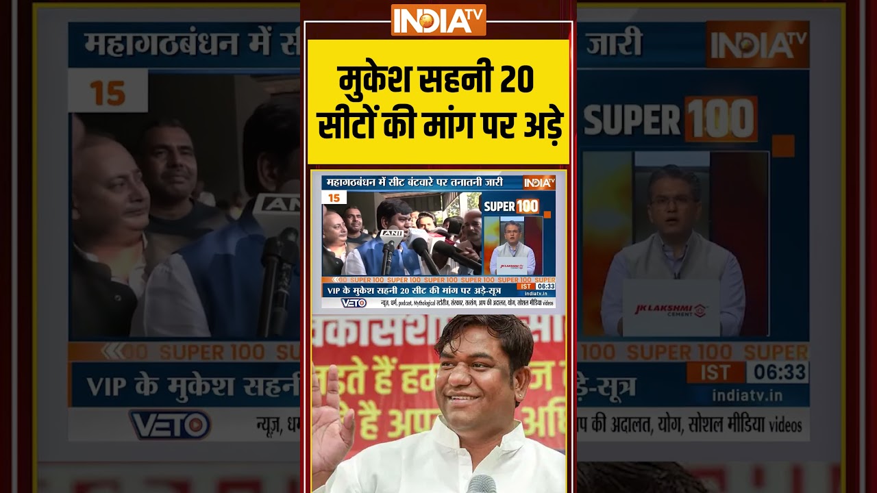 #IndiaTV Bihar Seat Sharing: #mukeshsahani 20 सीटों की मांग पर अड़े #rjd #vipparty #mahagathbandhan #shorts