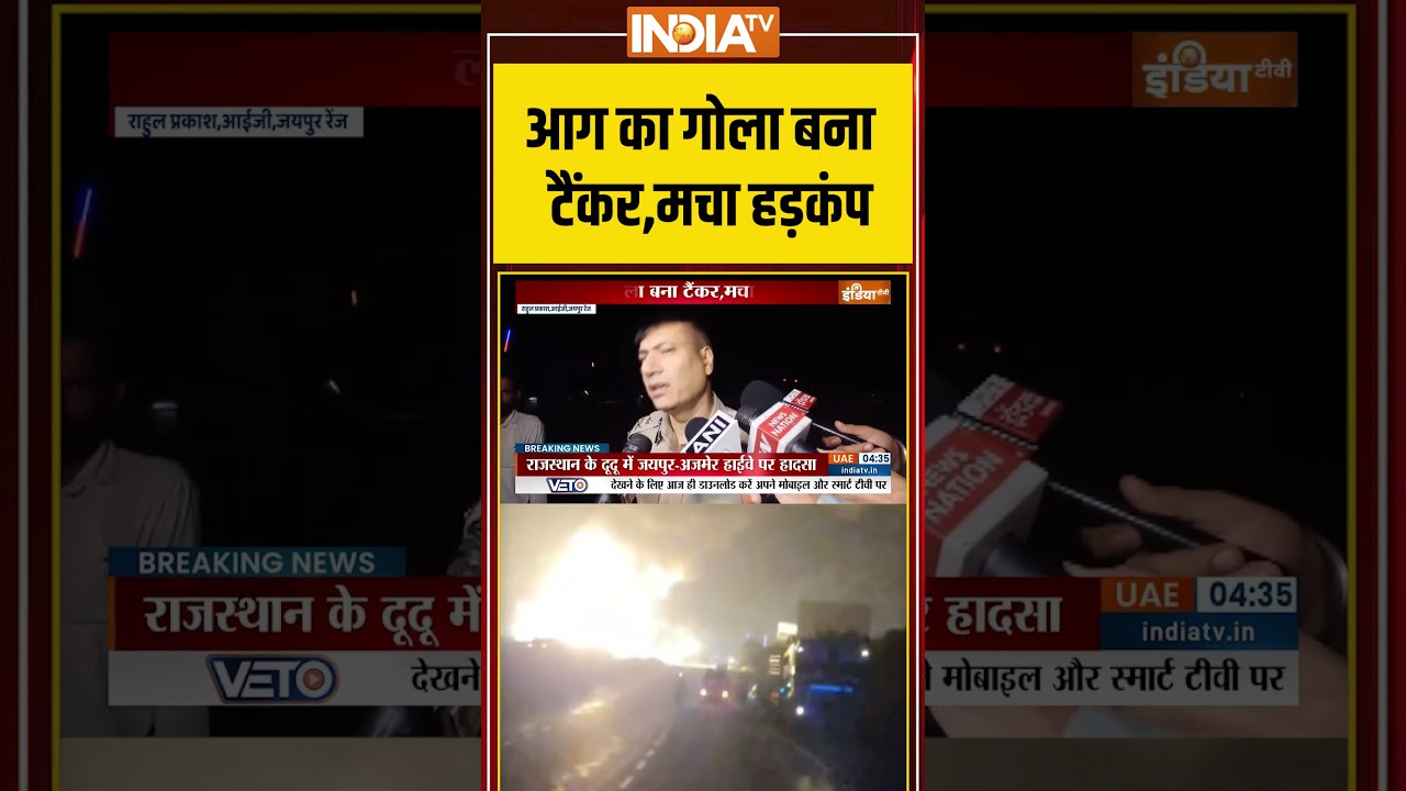 #IndiaTV Jaipur-Ajmer Highway Fire Accident: आग का गोला बना टैंकर, मचा हड़कंप #Gascylindersblast #jaipur