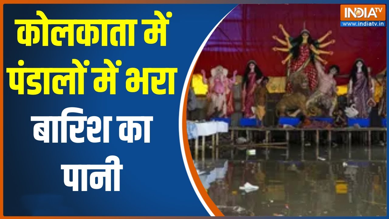 Kolkata Heavy Rain :कोलकाता में पंडालों में भरा बारिश का पानी, दुर्गा पूजा की तैयारियों पर असर