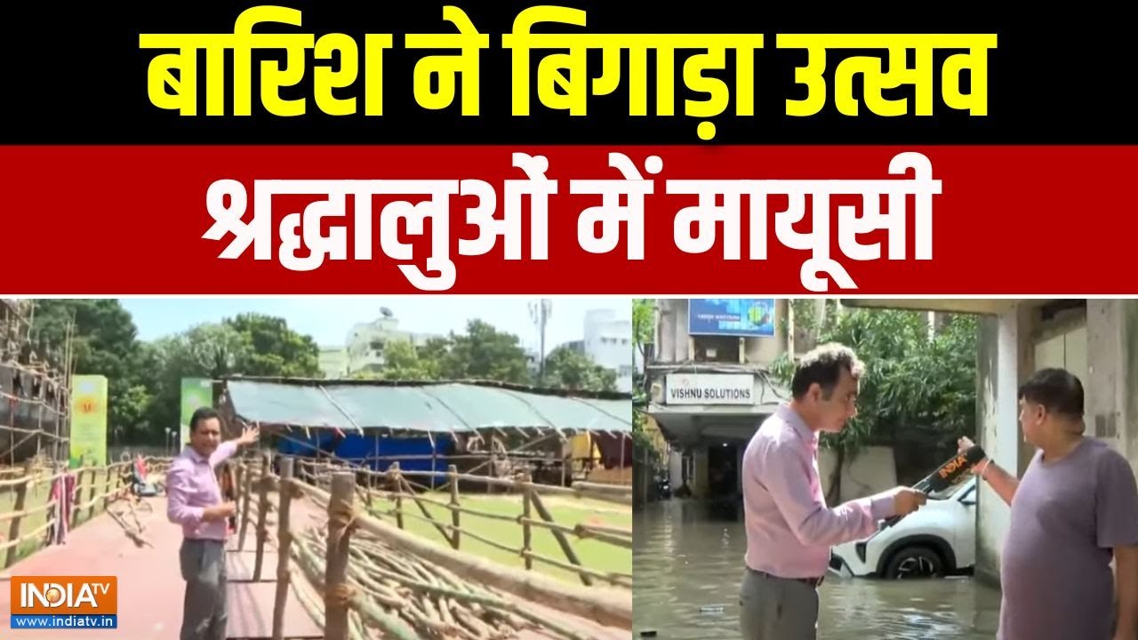 शक्ति की आराधना का पर्व चल रहा है और पश्चिम बंगाल में खासतौर पर राजधानी कोलकाता में पूजा पंडालों की शोभा देखने के लिए लोग दूर दूर से आते हैं. लेकिन इस बार दुर्गा पूजा पंडाल पानी में चला गया है. भारी बारिश और जलभराव के चलते उत्सव का रंग फीका पड़ गया है. भवानीपुर का दुर्गा पंडाल पानी में डूब गया हैआज होने वाली पूजा कैंसिल हो गई है.