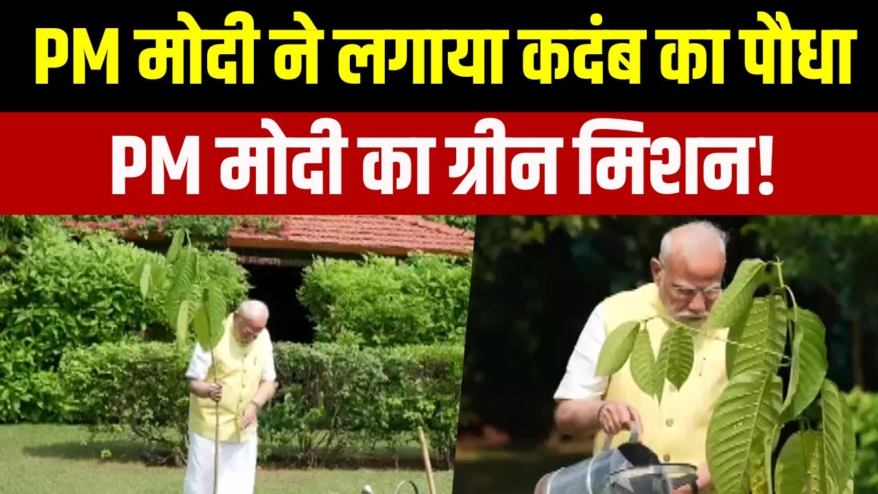 प्रधानमंत्री नरेंद्र मोदी ने अपने आवास पर कदम्ब का पौधा लगाया, जो ब्रिटेन के राजा चार्ल्स तृतीय ने उपहार में दिया था। #pmmodi #IndiaTV #kadamb #britain