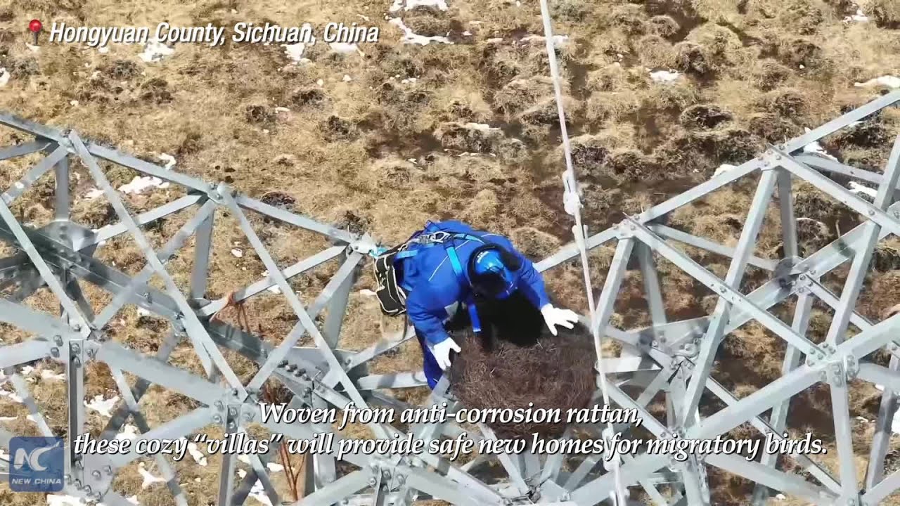 Infrastructure meets nature: Workers give birds a safe new home on power grid towers #NEWCHINATV