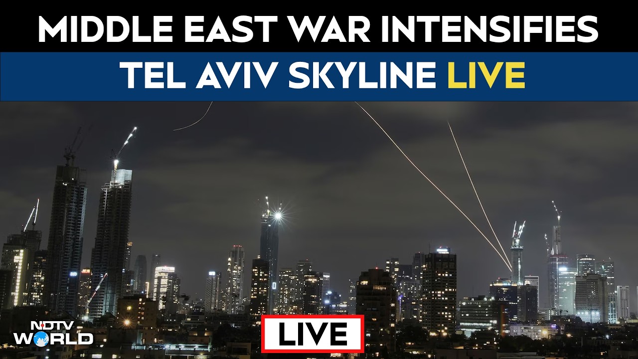 Live visuals from Tel Aviv show the city skyline as the conflict involving Israel and Iran continues.