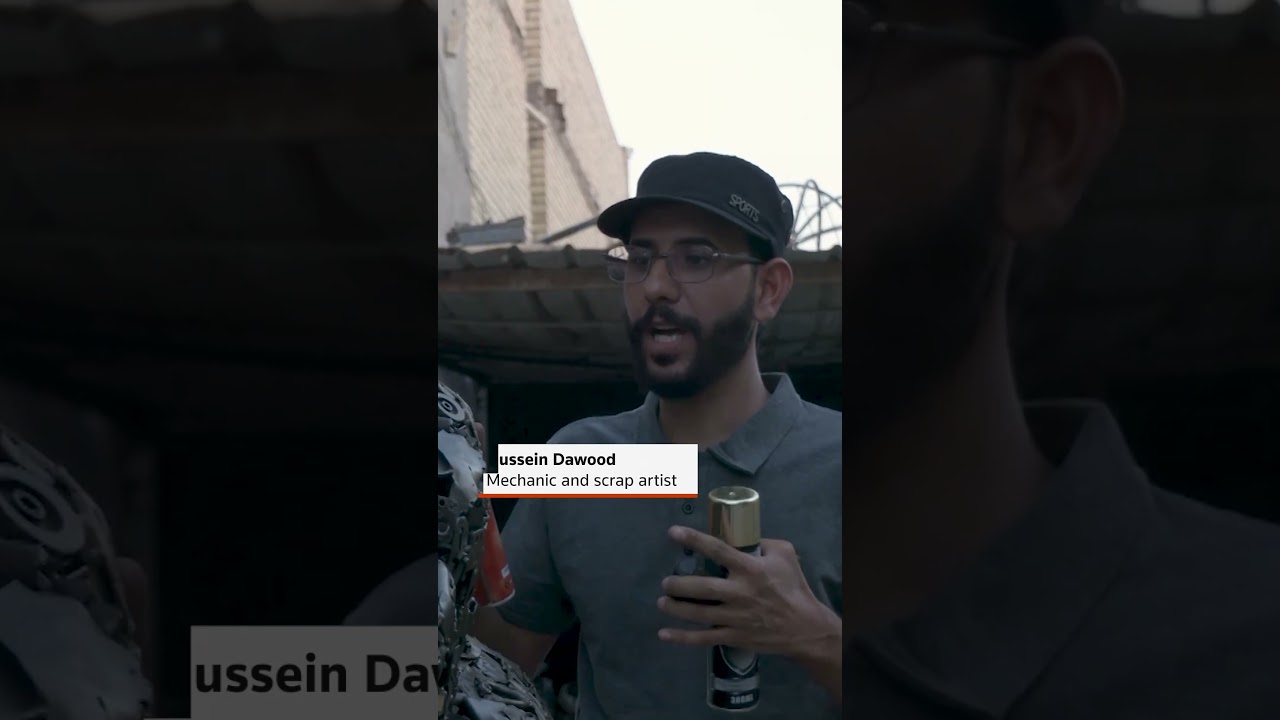 In a workshop in Najaf, Iraqi mechanic and scrap artist Hussein Dawood carefully assembles a model made entirely from upcycled vehicle scrap parts, blending creativity with environmental consciousness.