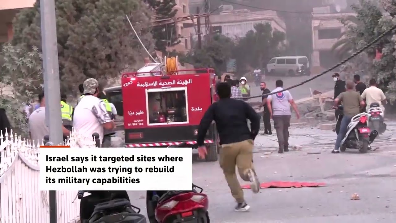 Israeli airstrikes hit a building in Tayr Debba, Lebanon, saying it targeted Hezbollah sites despite a ceasefire deal meant to end over a year of fighting.