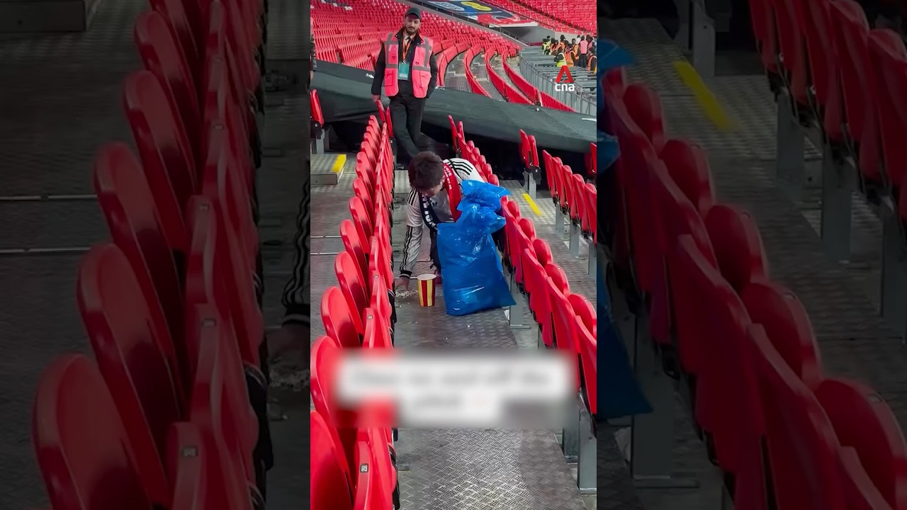 Japanese football fans clean up after themselves after Japan-England match #CNA