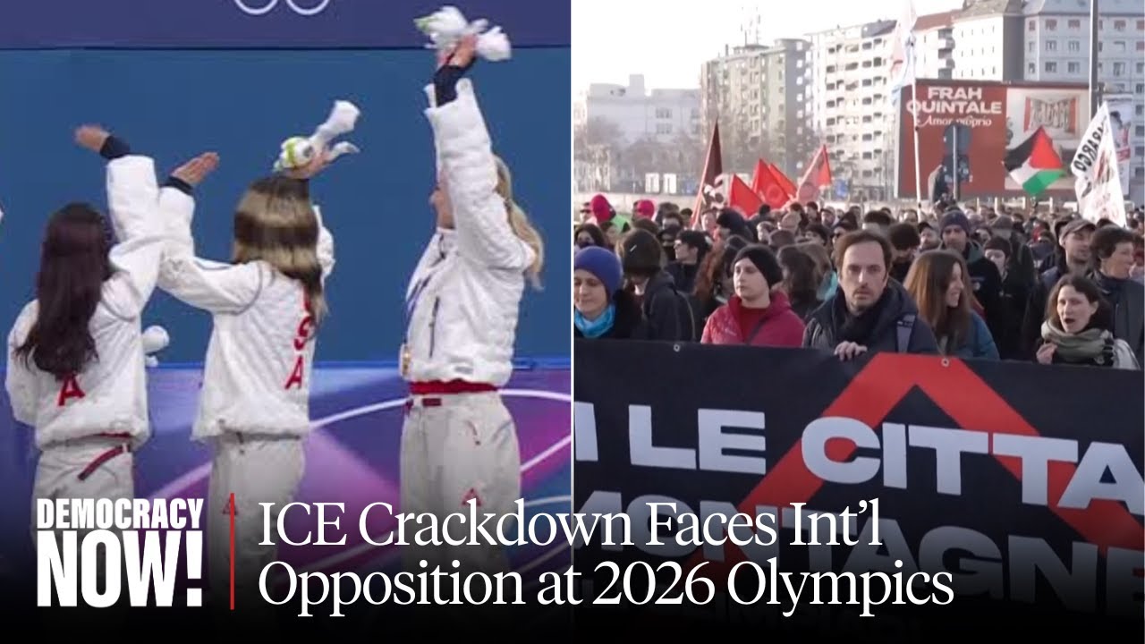 With the 2026 Winter Olympics underway in Italy, we speak with writer and academic Jules Boykoff, author of six books about the Olympics, who says Milan is hosting the Games despite widespread public opposition from locals. Boykoff says that while the Olympics have attempted in recent years to institute some “cosmetic” reforms, “they don’t get at the core elements that really plague the Olympic Games, and that’s overspending, that’s the intensification of militarized policing, that’s greenwashing, that’s corruption, that’s the displacement of local populations.”