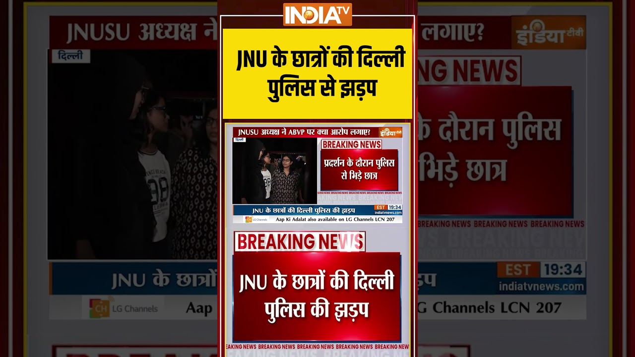 JNU के छात्रों की दिल्ली पुलिस से झड़प #delhipolice #jnu #jnusu #abvp #indiatv #shorts