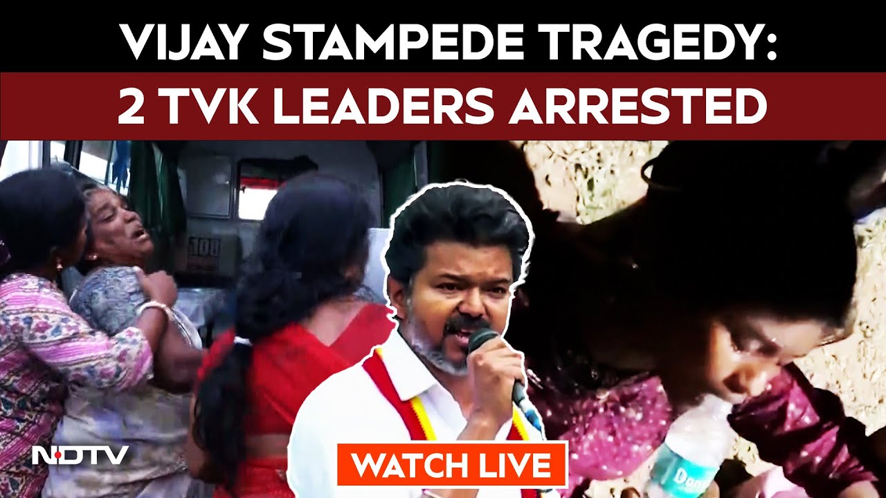 Following the Karur stampede at a TVK event that claimed 41 lives, two TVK leaders have been arrested. DMK MP Kanimozhi, speaking to NDTV, urged against political blame games, emphasized adherence to safety protocols, and said the courts should decide on a CBI probe or any case against Vijay. She stressed that no one is above the law and called for compassion for the victims’ families.