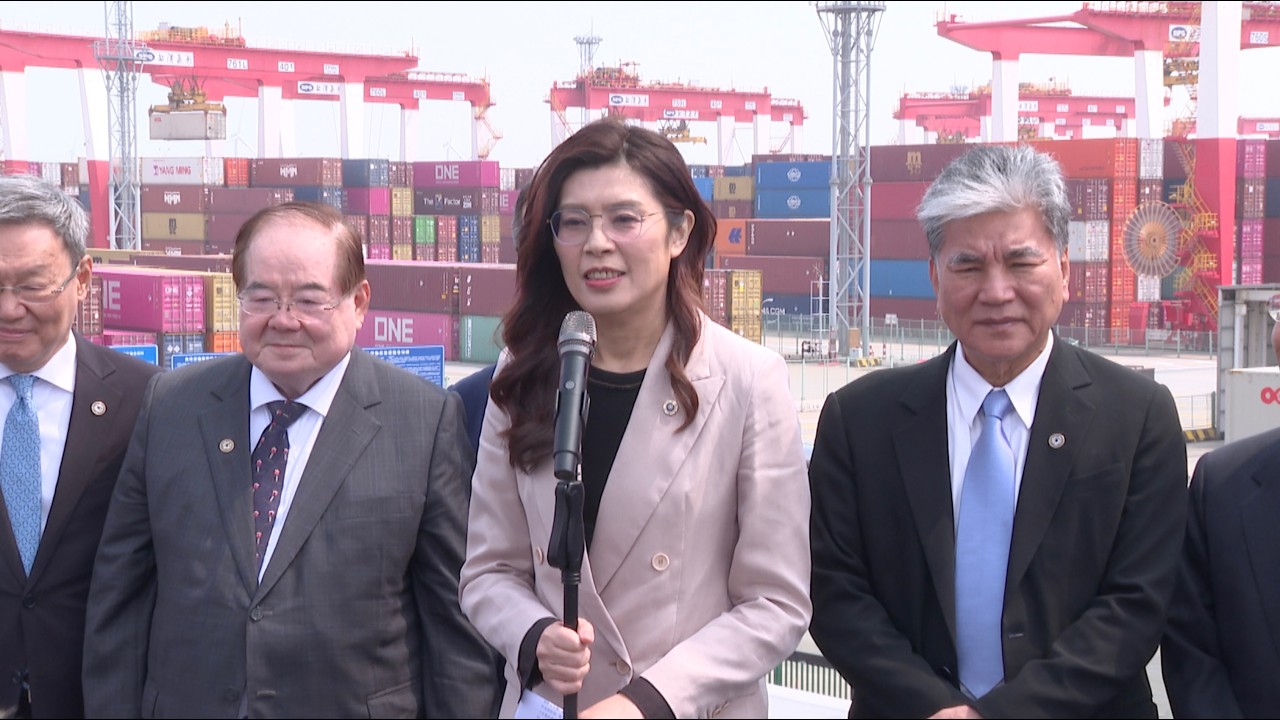 A Chinese Kuomintang party delegation, led by Chairwoman Cheng Li-wun, arrived in Shanghai on Wednesday afternoon. The delegation visited multiple places, regarding culture, business and technology. On Thursday, after visiting the Yangshan Deepwater Port close to Shanghai, Cheng Li-wun made a speech, expressing confidence that the two sides of the Taiwan Strait could cooperate for peaceful development together.