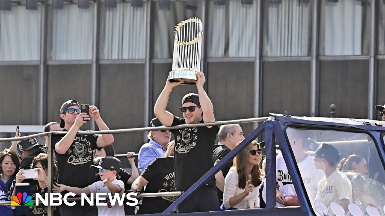 The Dodgers celebrated their repeat World Series win with a parade in Los Angeles. Fans filled the streets cheering on the players as confetti blanketed the area.