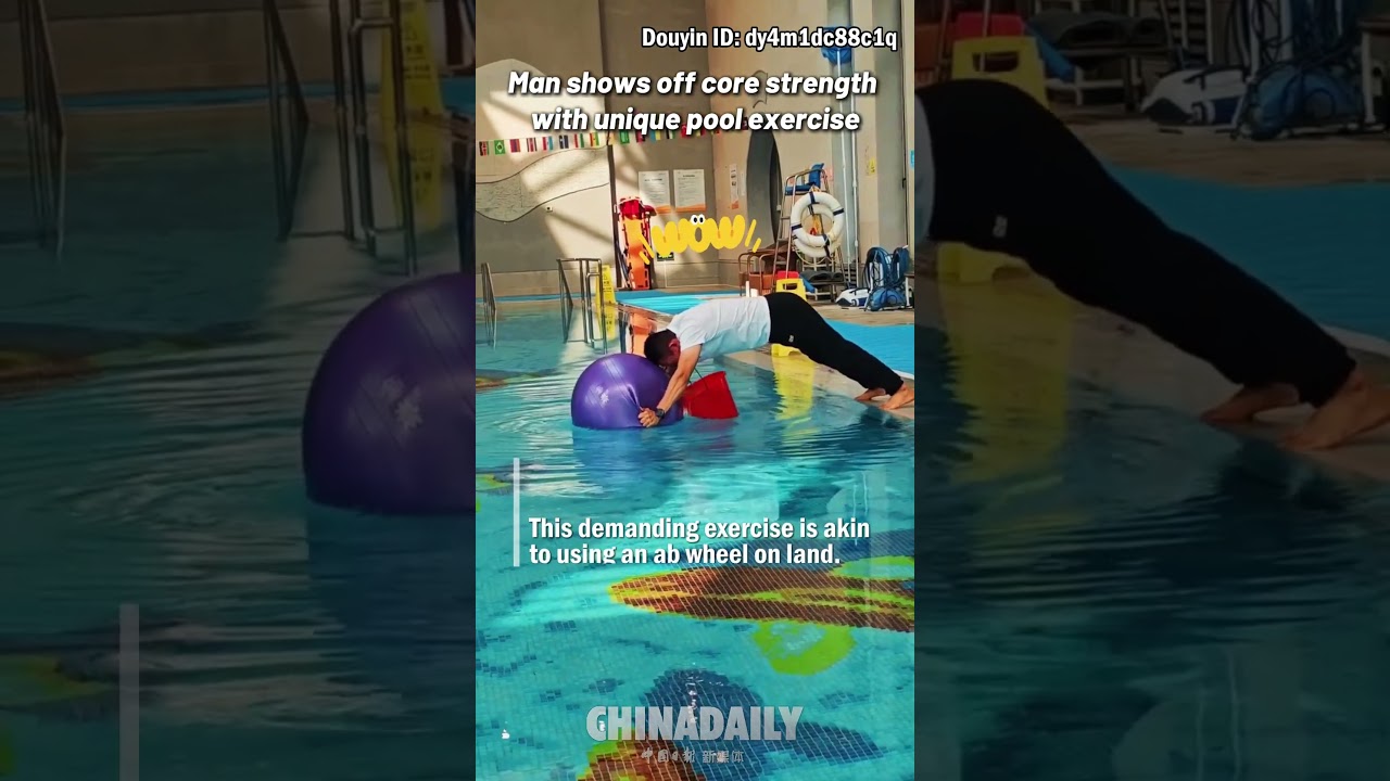 Man shows off core strength with unique pool exercise #ChinaDaily #中国日报
